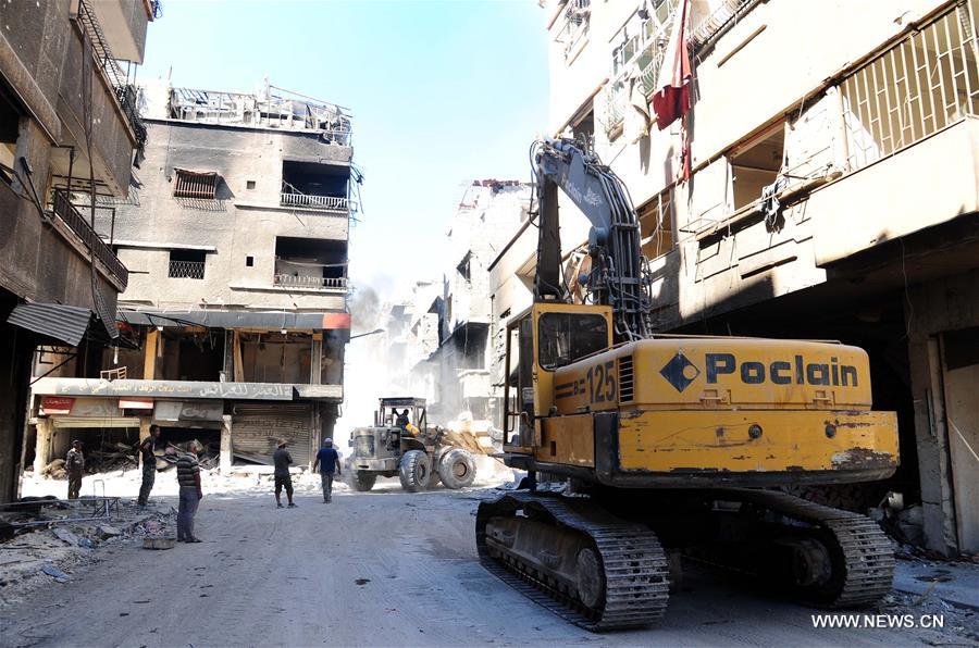 *- החלו פעולות שיקום מחנה הפליטים ירמוק במרחב דמשק.