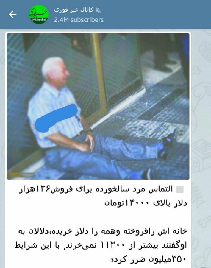 כחלק ממסע תעמולה כוזב זה פרסמו באירן תמונה הטוענת שהיא של אירני שהמיר את כל הונו לדולרים אמריקאים ועכשיו,עם נפילת ערך המטבע האמריקאי באירן,הוא איבד את כל עולמו.