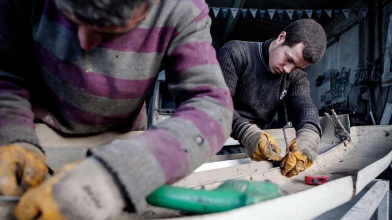 בתמונה:פליטים סורים במפעלים בטורקיה: