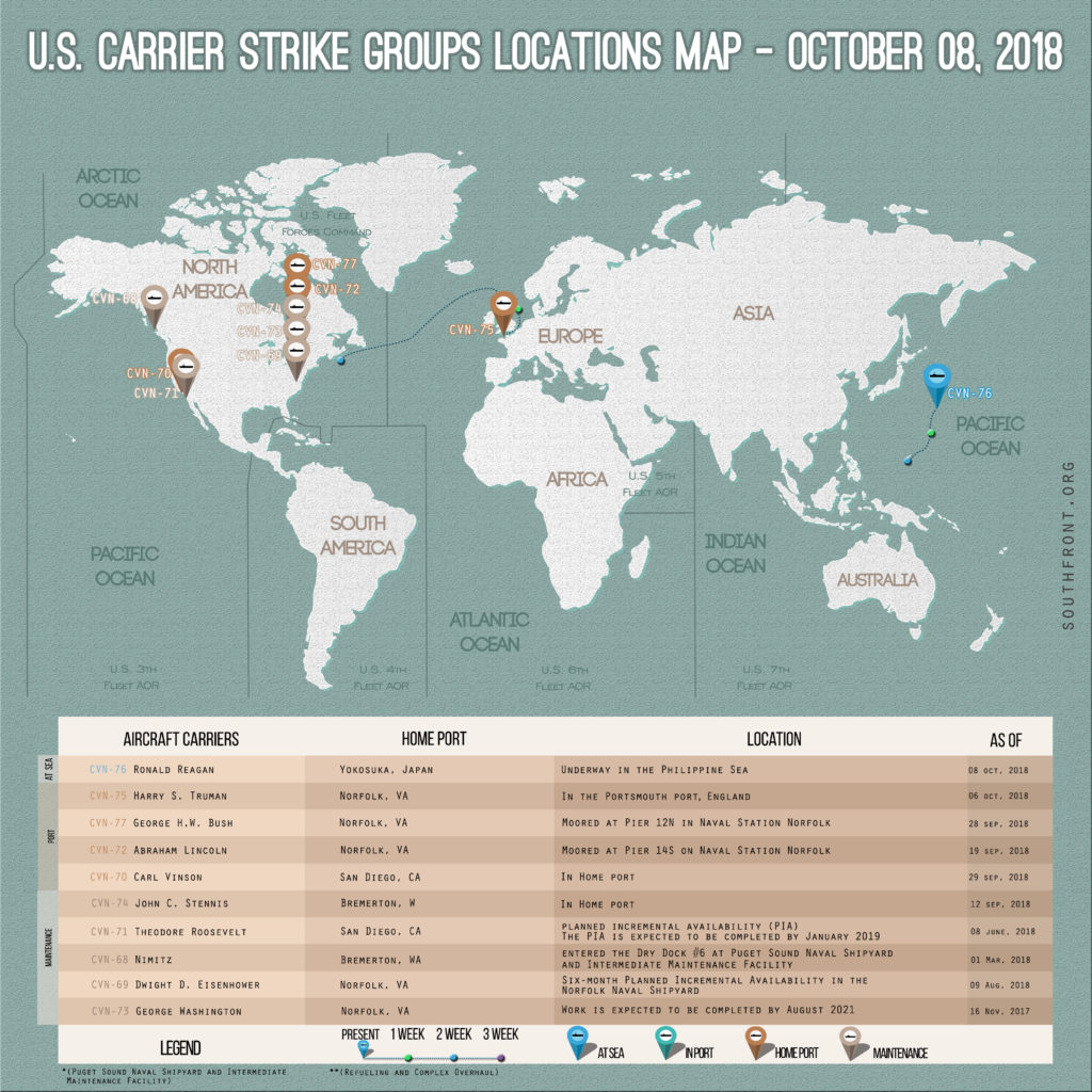 *-מיקום כל נושאות המטוסים האמריקאיות ברחבי העולם: