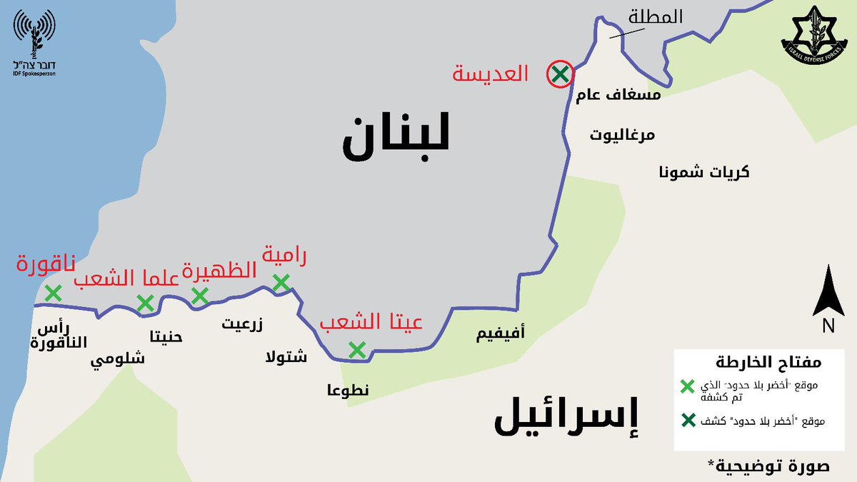 *- צה”ל חושף עמדות תצפית של החיזבאללה בנקודות של ארגון ירוקים לשמירת הטבע- “ירוק ללא גבולות” תוך הפרת החלטת האו”ם 1701.החיזבאללה לא איפשר לאו”ם לבדוק נקודות אלו בטענה כי מדובר בשטח פרטי.
