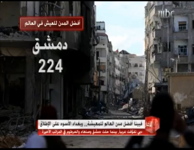 *- דמשק מדורגת במקום ה-224 מתוך 230 ערים ברחבי העולם שטוב לחיות בהם. יותר רע כמעט כבר לא יכול להיות.