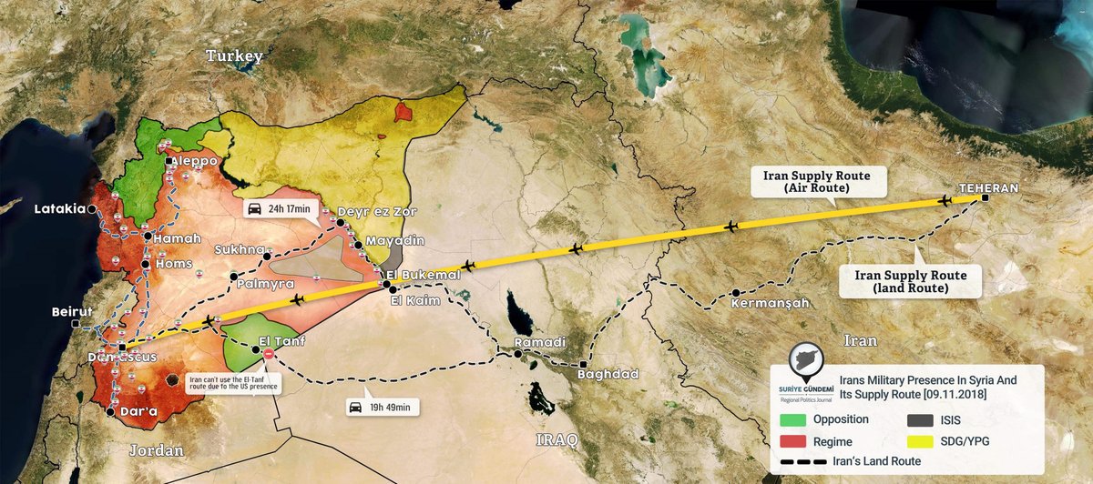 *- מסלולי האספקה מאירן לסוריה :היבשתי והאווירי: