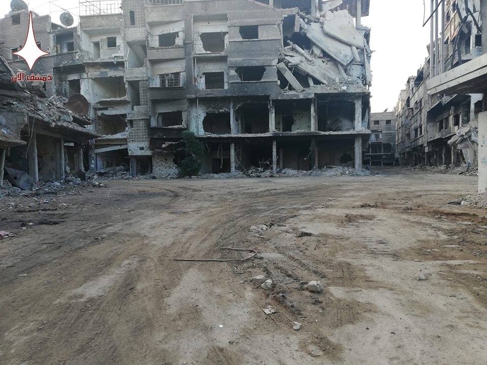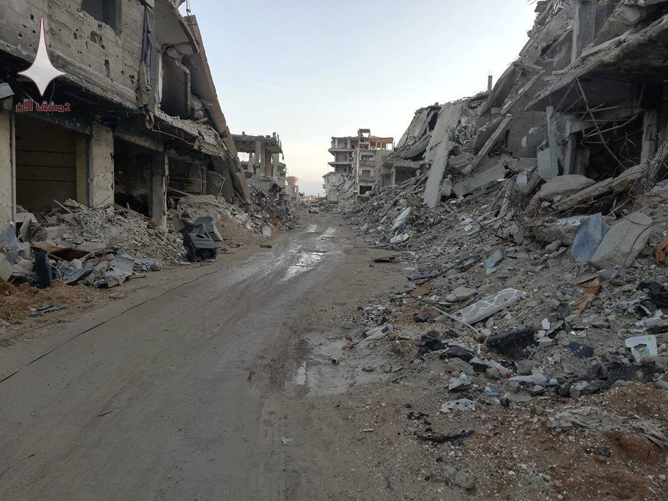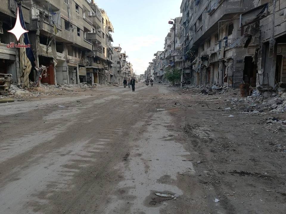 *- אזור מחנה הפליטים ירמוק שבמרחב דמשק נפתח שוב לתנועה לאחר ניקוי ההריסות מצירי התנועה.