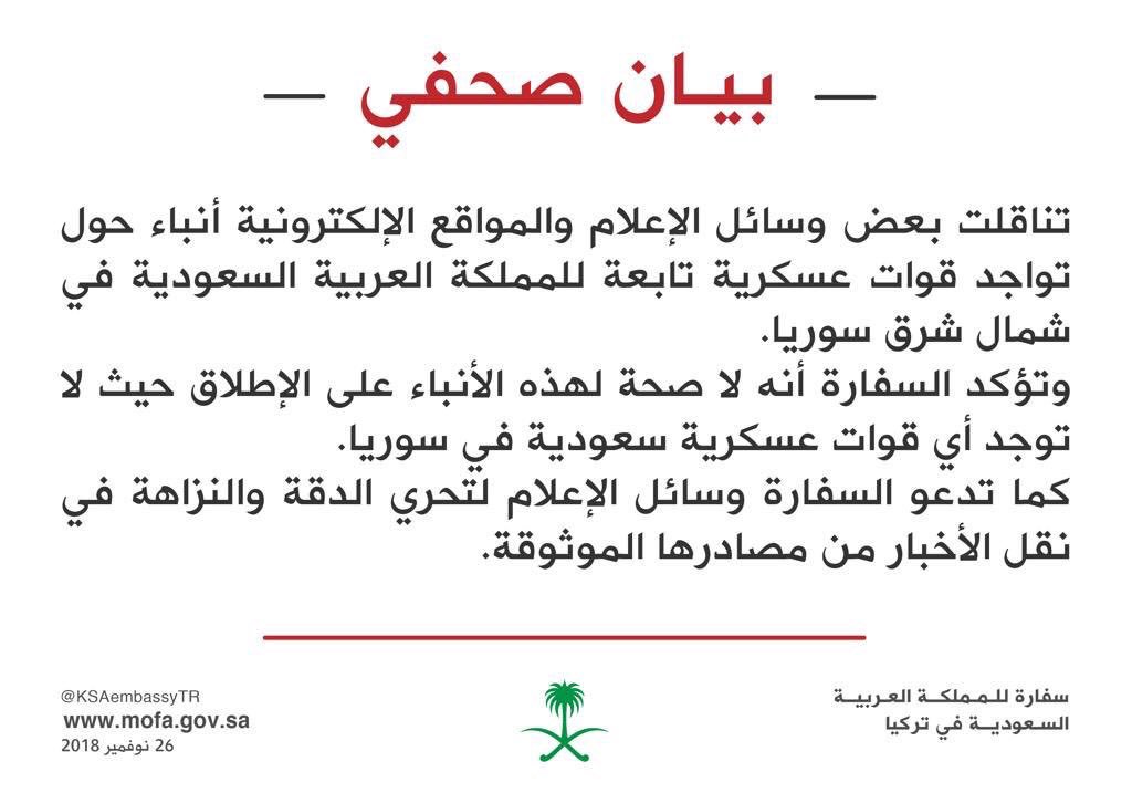 *- סעודיה מכחישה את הידיעות כאילו היא שלחה כוחות צבא לצפון מזרח סוריה לאזור הנתון בשליטת האמריקאים.
