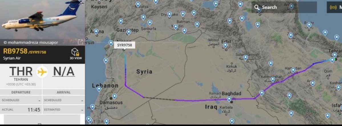 *- אירן מעבירה חלק ממטוסי המטען העמוסים נשק לשדה התעופה אלנירב ליד העיר חאלב בצפון סוריה.