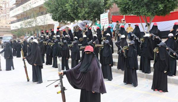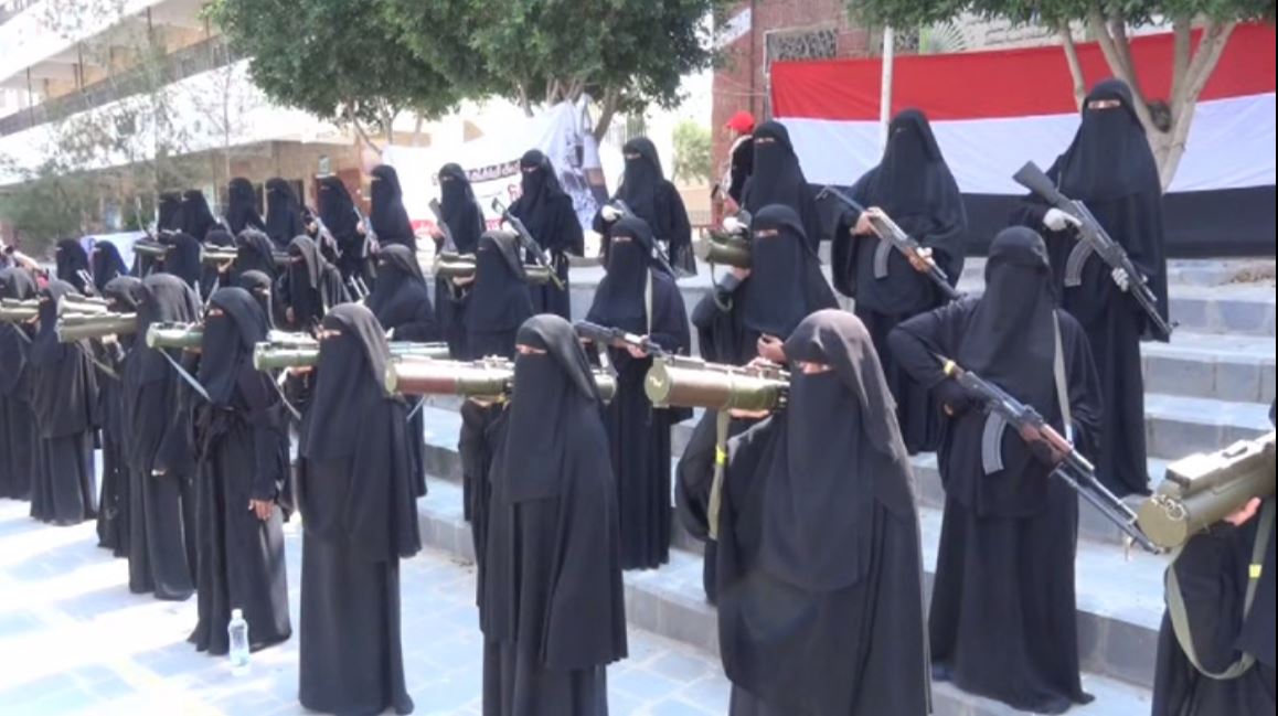 *- החיזבאללה משקיף מקרוב אחרי אימון נשים על ידי החות’ים בתימן.