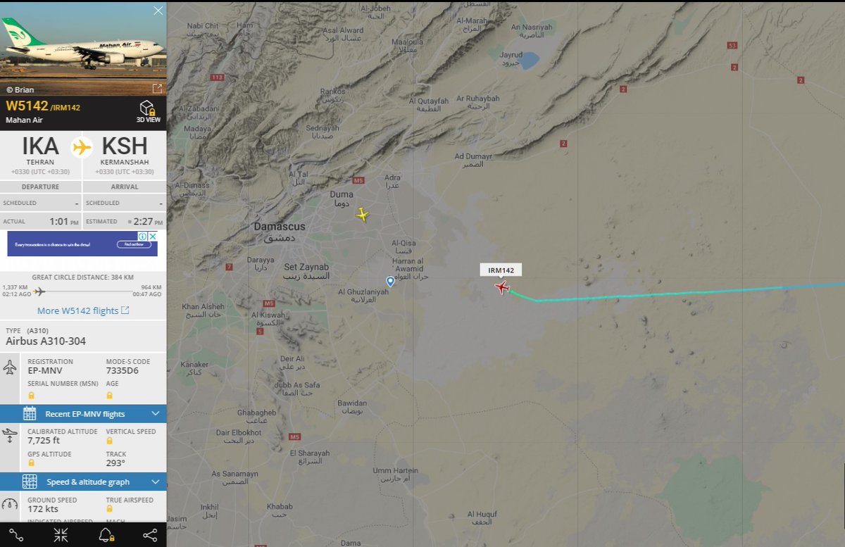 דיווח ערבי:טיסה שהגיעה מאירן לדמשק הביאה משלוחי נשק חשודים.