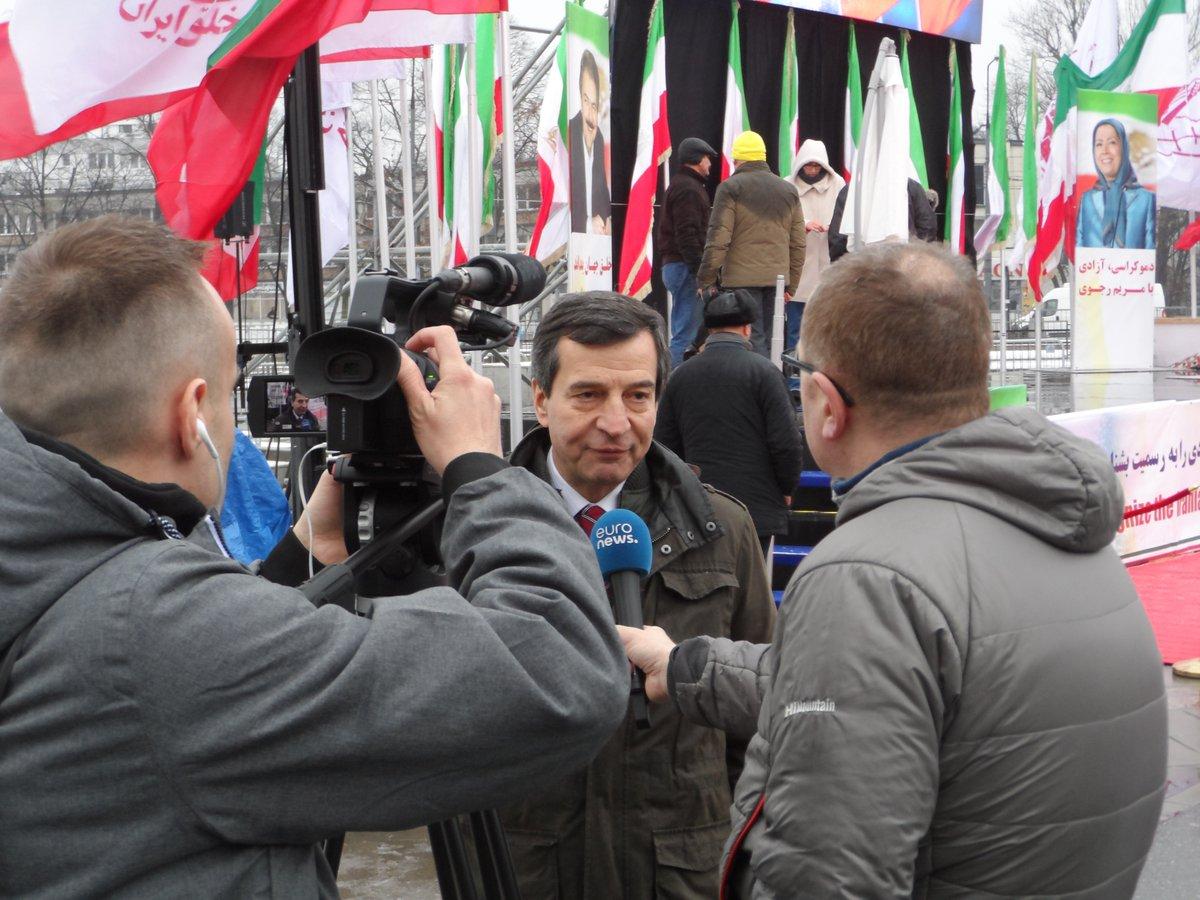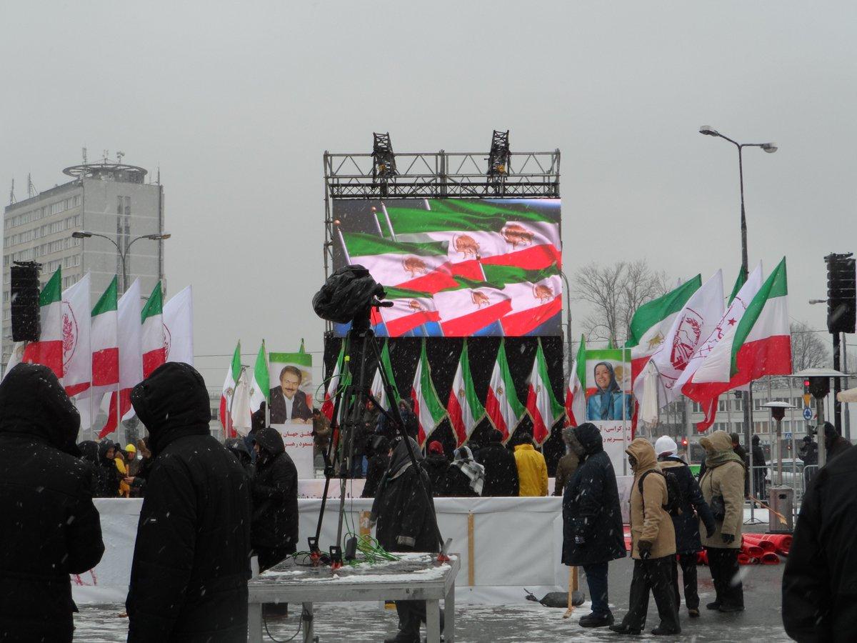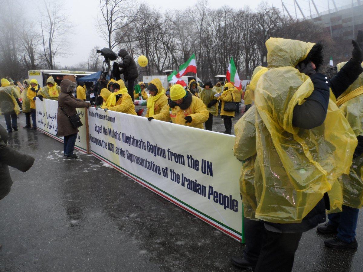 *- 100 אנשי אופוזיציה אירנית מפגינים מול באי ועידת וורשה.
