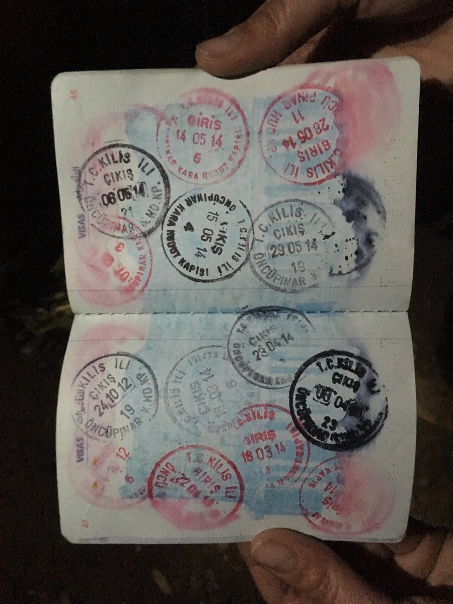 *- דרכון עם הרבה מאוד חתימות של איש דאעש שנמצא במעוז האחרון שלהם ליד העיר בארוז במזרח סוריה. מה שמוכיח שהאיש יצא ונכנס לטורקיה מספר רב של פעמים בהסכמת השלטונות .