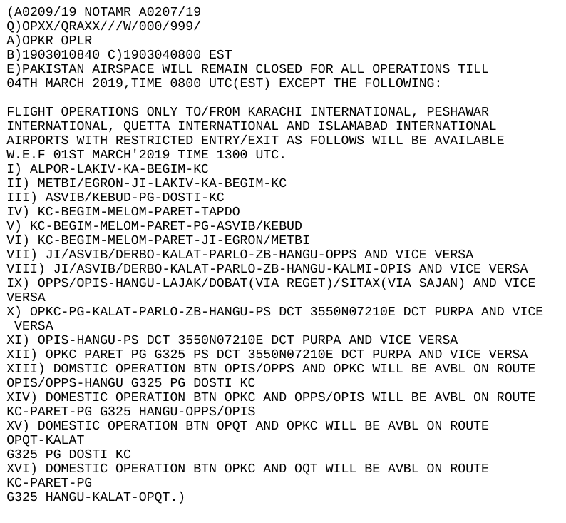 *- פקיסטן משאירה את התחום האווירי שלה סגור בפני תעופה בין לאומית אזרחית בגלל המתח עם הודו לעוד 3 ימים.