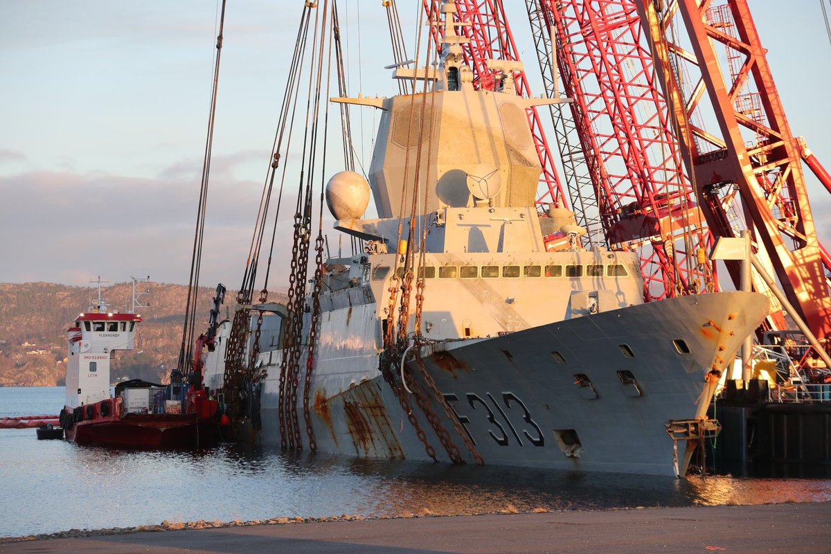 אלא שעלותה העצומה של הפריגטה הנורבגית על ציודה ששקעה בים,שנאמדה ביותר מחצי מיליארד יורו,לא הותיר הרבה ברירה בידי קברניטי המדינה והם החליטו להעלות את האנייה מעל פני המים ולהובילה למבדוק יבש על מנת לקבל החלטה מושכלת האם לשפצה או לפרק את מה שניתן לחזור ולהשתמש בו ואחר כך להעביר את שרידי הספינה לגריטה.