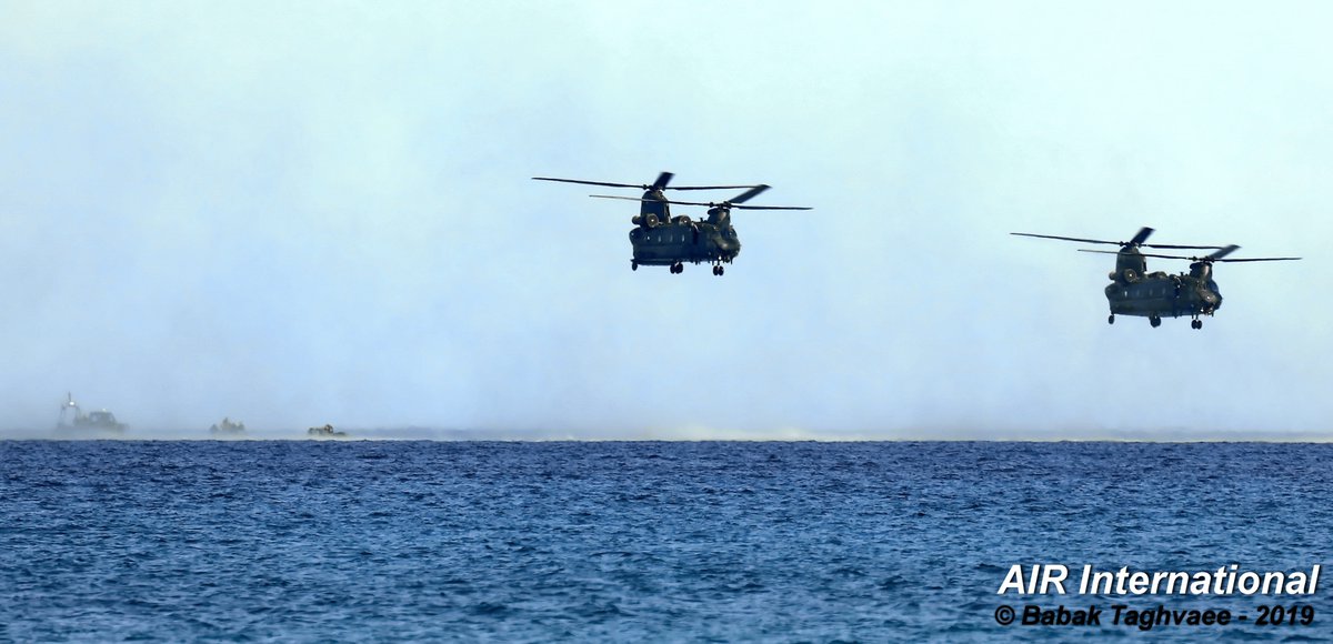 2 מסוקי תובלה וסער של חיל האוויר הבריטי מדגם ציינוק-HC6, בעלי מספר זנב : ZK562 ו- ZK563 עשו דרך ארוכה מאוד מבסיס חיל האוויר אודיאם שבאנגליה עד לעיר נמל הירדנית-עקבה.