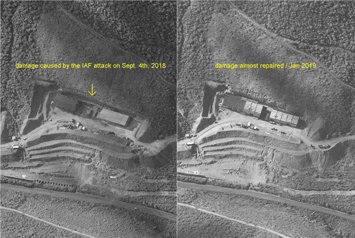 המבנה במפעל להרכבת טילים בליסטיים “אחרי תקיפה” מול אחרי “שיקום”: