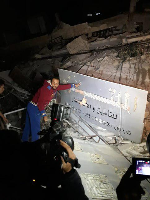 *- משרדו של הנייה -נהרס בהפצצה אווירית לא לפני שקבל איתות בדמות “הקש בגג” כדי למנוע נפגעים .