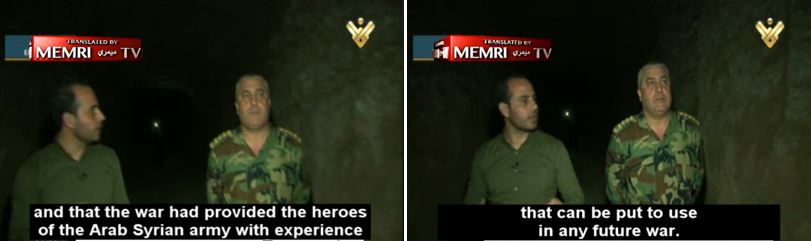 לדבריו, הצבא הסורי קידם ציוד בלוחמת מנהרות, שרובו הוא ציוד שהותאם במיוחד ביצור מקומי, וכי החיילים הסורים יכולים לחפור מנהרות באיכות גבוהה לכל עומק ובכל סביבה או תנאי, למטרות פוגעניות או הגנתיות . הוא הוסיף כי “המלחמה האמתית” עם ישראל קרובה יותר מתמיד ולשם כך נערכים לשינוי המדיניות השרירותית שאויבי המדינה הציבו לעצמם.