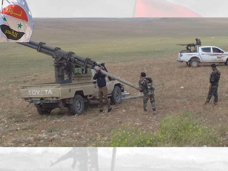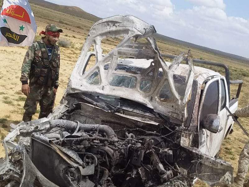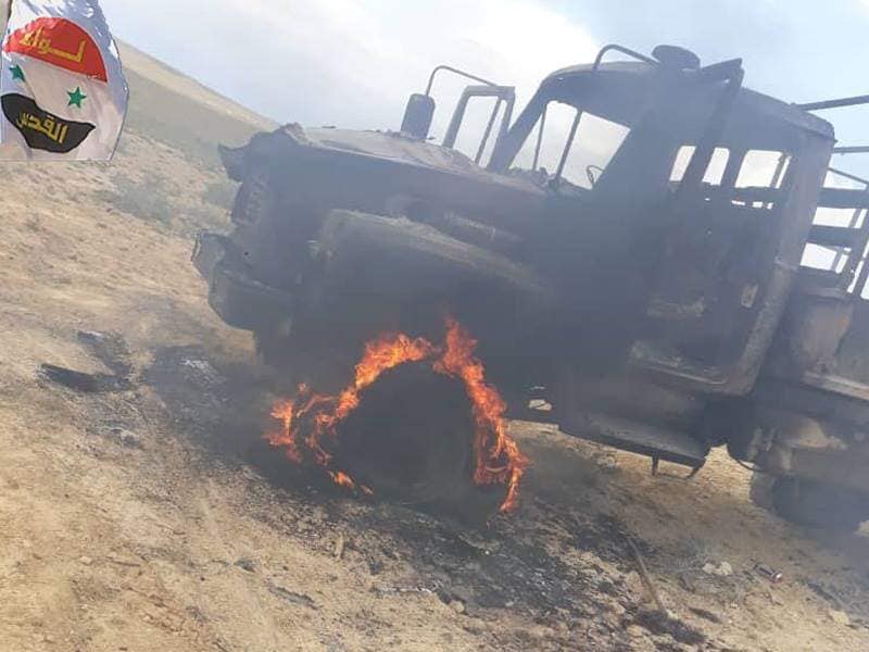*- תמונות משיירה סורית,של כוח אלקודס הפלסטינית, שהותקפה על ידי דאעש במדבר הסורי :