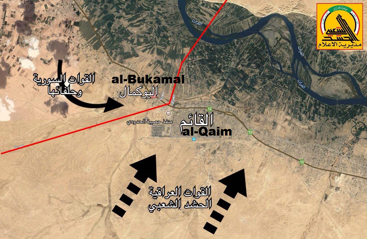 מפקד בכיר במיליציית אלחשד אלשעבי העירקית מזהיר מפני תכנית אמריקאית לבסס את שליטתה על מעבר הגבול החשוב- אלקאים שליד עיר המחוז-אלבוקמאל שבשטח הסורי הגובל עם עיראק, במטרה לאפשר העברת טרוריסטים מסוריה לעירק – כך מדווחת סוכנות החדשות האיראנית – “פארס”.