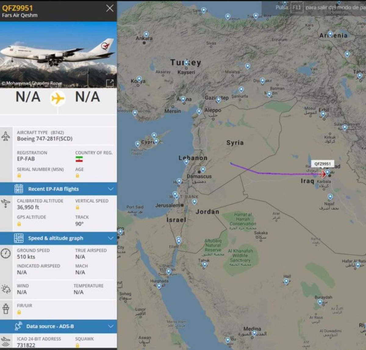 כמו כן נצפו מטוסי מטען איראנים שהגיעו מבגדד לשדה התעופה טי-4 בסוריה שם פרקו נשק ותחמושת רבה.