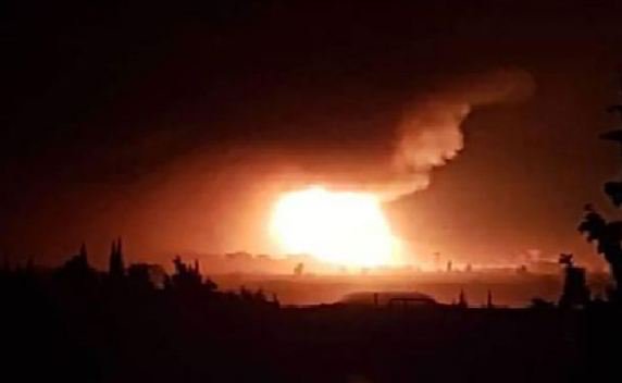 #Breaking: Here is the first video showing aftermath of #Israel Air Force's airstrike at #IRGC's new command and control center in #T4/#Tiyas Air Base of #Syria Arab Air Force at #Homs province. Also a stock of #IRGC's ballistic missiles & several UCAVs are targeted by the F-16Is pic.twitter.com/qsi3s0Yr7U