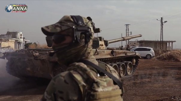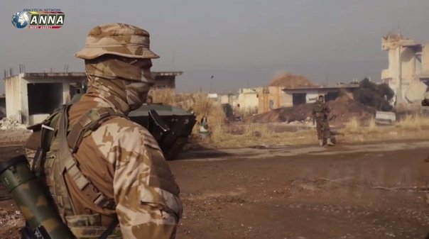 אלחסן צולם על ידי סוכנות הידיעות – אנה ניוז – Anna News Agency ליד קווי הלחימה הקידמיים באזורים הצפון מערביים של מחוז חמאת.