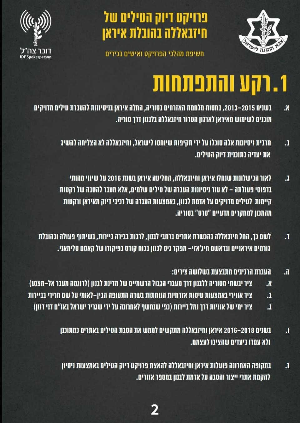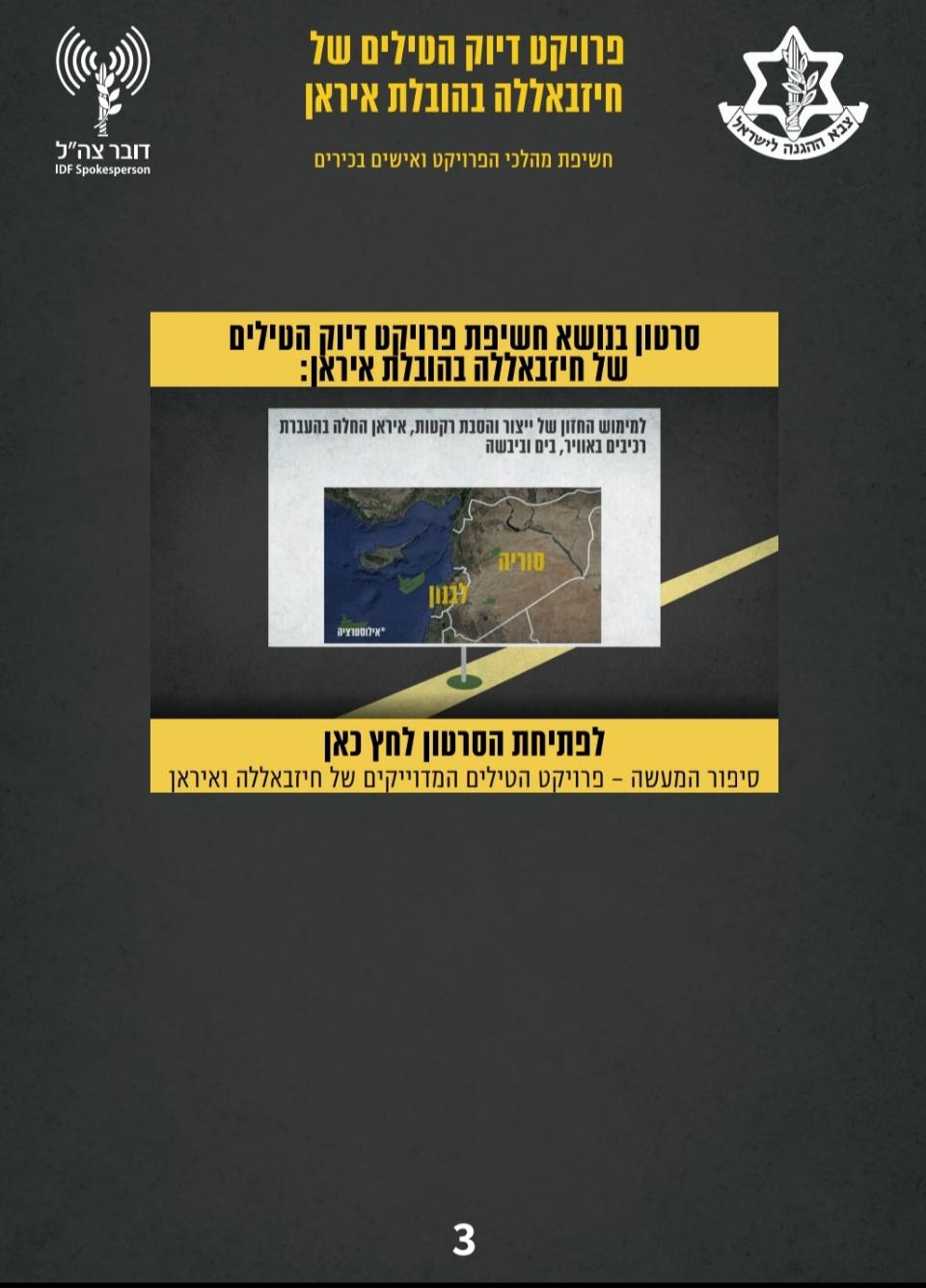 א. סרטון בנושא חשיפת פרויקט דיוק הטילים של חיזבאללה בהובלת איראן.