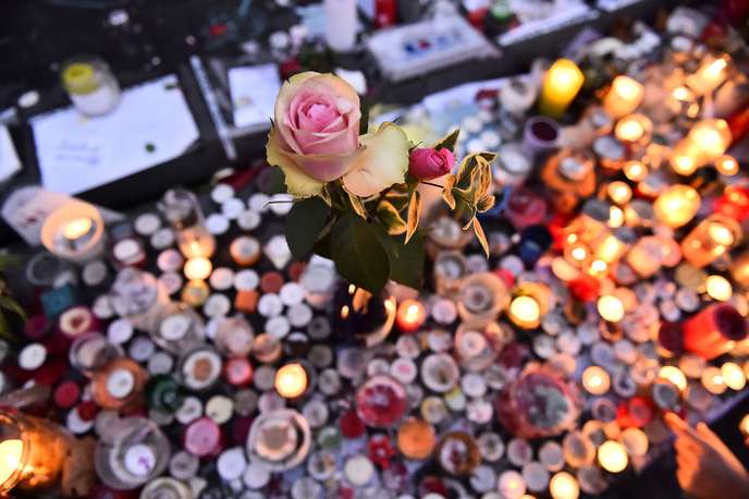 Fleurs et bougies en hommage aux victimes des attentats du 13 novembre, sur la place de la République, à Paris. LOIC VENANCE / AFP