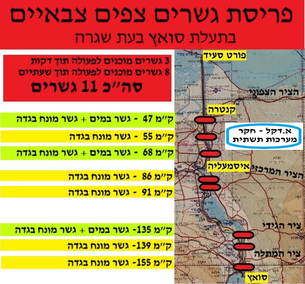 מערך הגישור האזרחי הקיים לאורך תעלת סואץ (ראה פרק  15  בסדרת מאמרים זו) משפר את יכולת צבא מצרים לחצות במהירות את תעלת סואץ ומצמצם את סיכוי הפגיעה של מערך הצליחה במקרה של מלחמה.