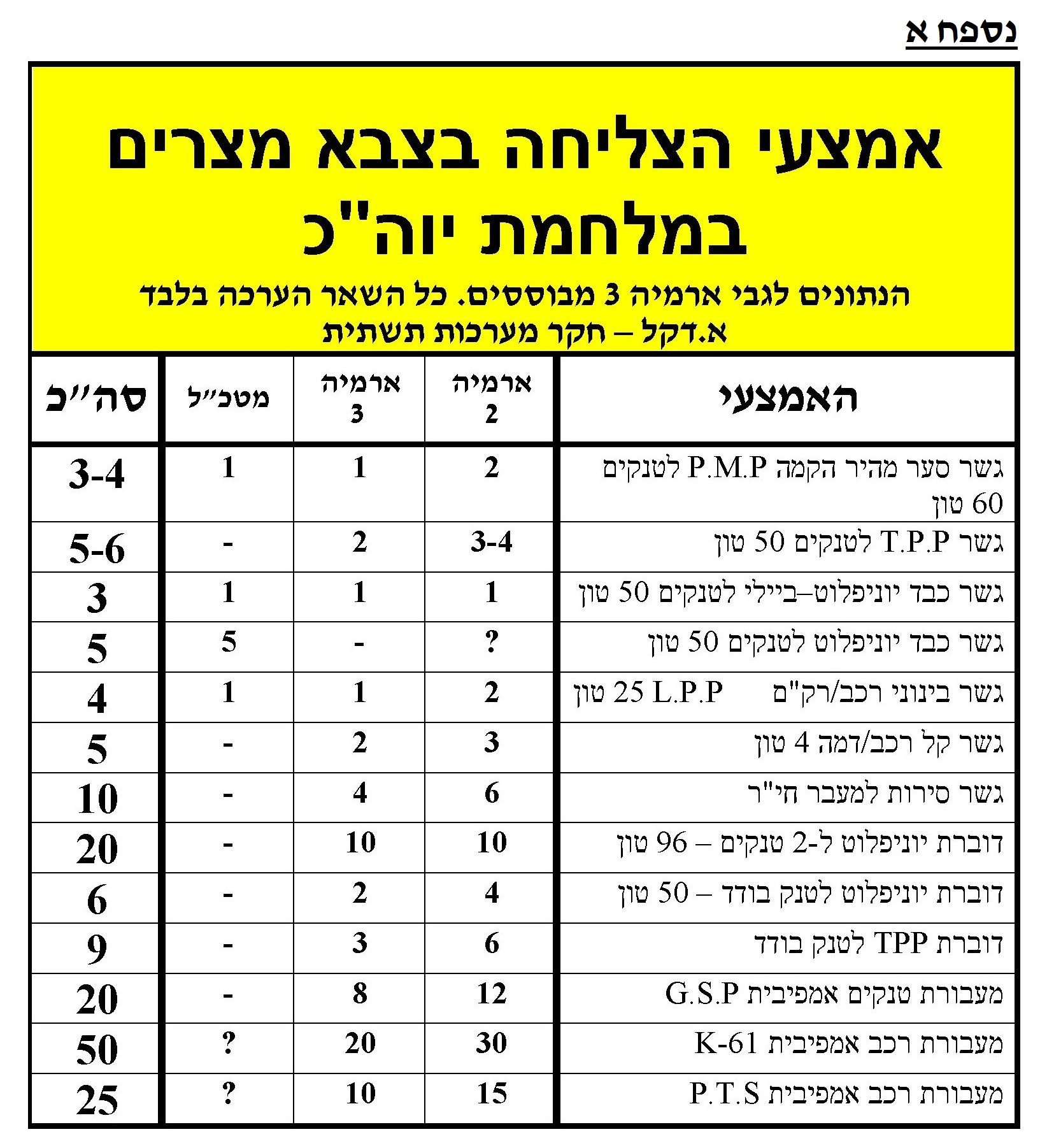 סד”כ ציוד הגישור כיום לא ידוע לי, אך סביר להניח כי הוא לא פחת ממה שעמד לרשותם במלחמת יום הכיפורים. לכן בסוף המאמר מצורפת טבלת סיכום אמצעי הצליחה בצבא מצרים במלחמת יום הכיפורים” [נספח א’] .
