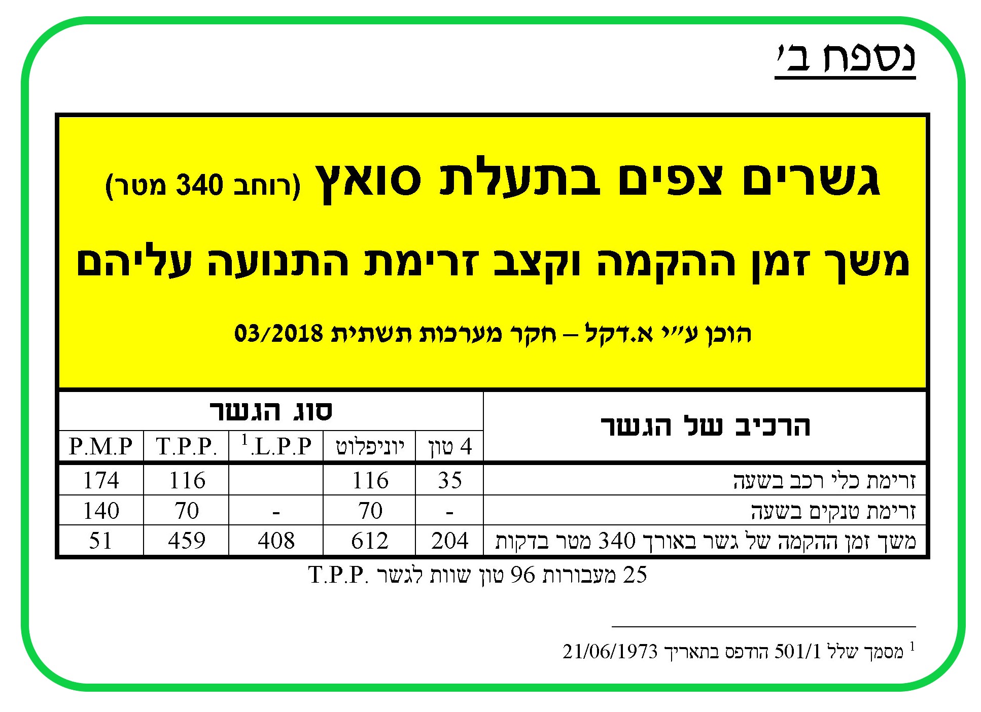 חציית התעלה באזור “מעקף איסמעיליה” שבו יש למעשה צורך לחצות 2 תעלות, נע להערכתי בין ½11 ל-½13 שעות תלוי בסוג הגשרים, ואם החצייה היא ללא מובילים או עם מובילים. [נספח ד’]