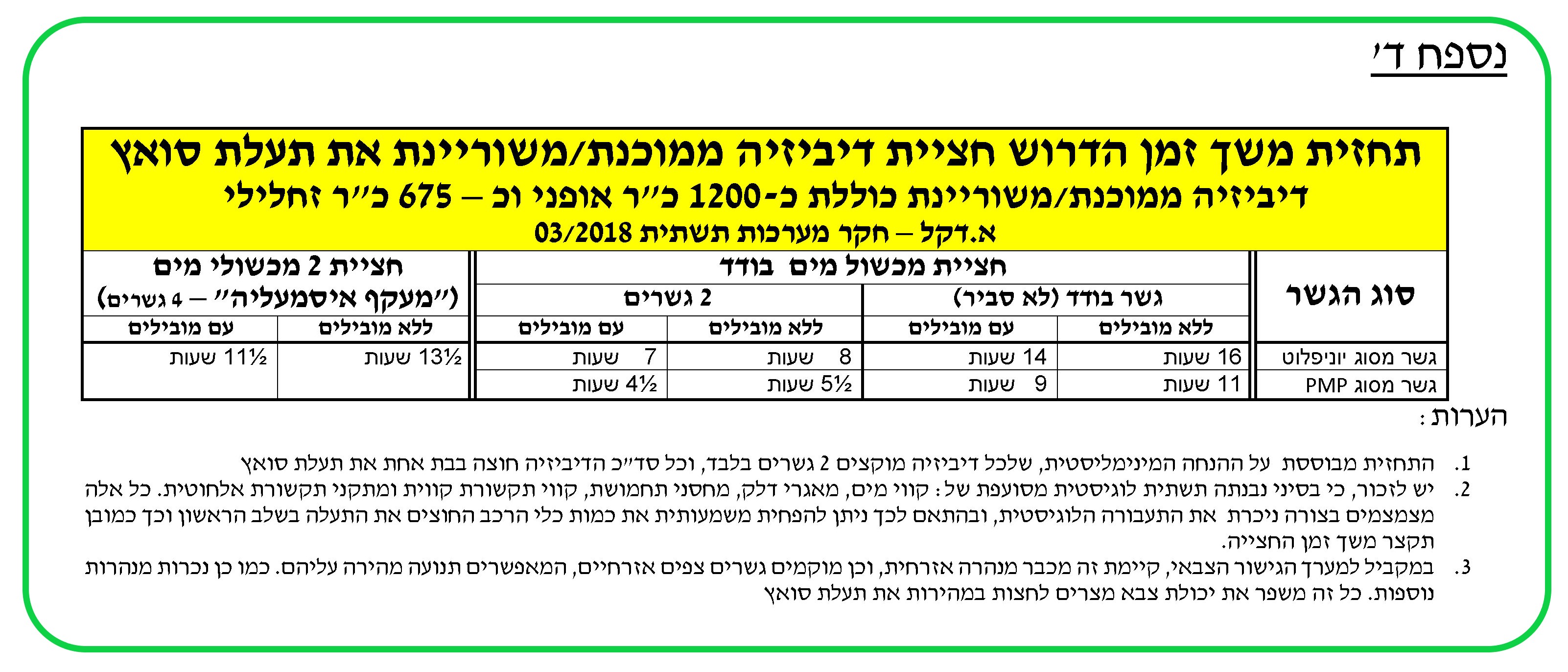 יש לזכור, כי בסיני נבנתה תשתית לוגיסטית נרחבת המייתרת את הצורך במעבר של חלק מהלוגיסטיקה בשלב הראשון של החצייה, ולפיכך ניתן לקצר משמעותית את פרקי הזמן, שמניתי לעיל. ראה נספח ד’]