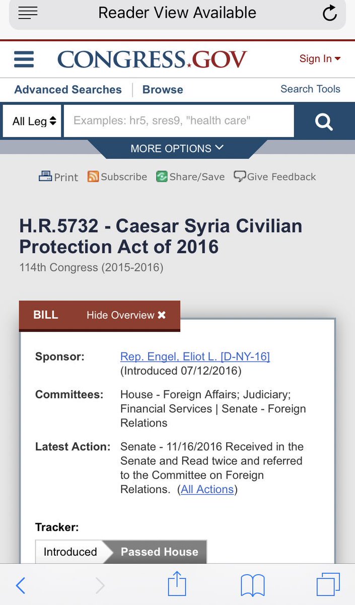 לאחר שבית הנבחרים האמריקני הצביע על “חוק קיסר הגנה על אזרחים סורים” ולאחר אשרור החוק ,ארה’ב תחל במדיניות חדשה של לחץ על משטר אסד. כמו כן סנקציות משפטיות וכלכליות חמורות וחסרות תקדים עשויות להיות מכוונות נגד כל זרועות המדינה,מוסדותיה לרבות האנשים הקשורות בהן, כולל חברות, יחידים, ממשלות והגורמים העוסקים במישרין או בעקיפין, בין אם על ידי מכירת טכנולוגיות צבאיות ומתן שירות להן ובין אם במסגרת חילופי מידע, או התקשרות חוזים מסחריים ואחרים.