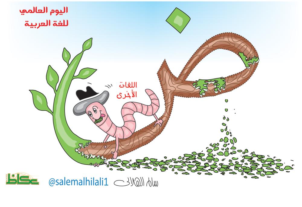 התולעת רעבה והיא אוכלת את הצמח בצורת האות דַ֗אד. מפשיטה אותו מעליו. השפות האחרות מכרסמות בשפה הערבית וקרנה של השפה הולך ויורד. מה יהיה בסופה? מקונן הקריקטוריסט הסעודי סַאלֶם אלהִלַאלִי.