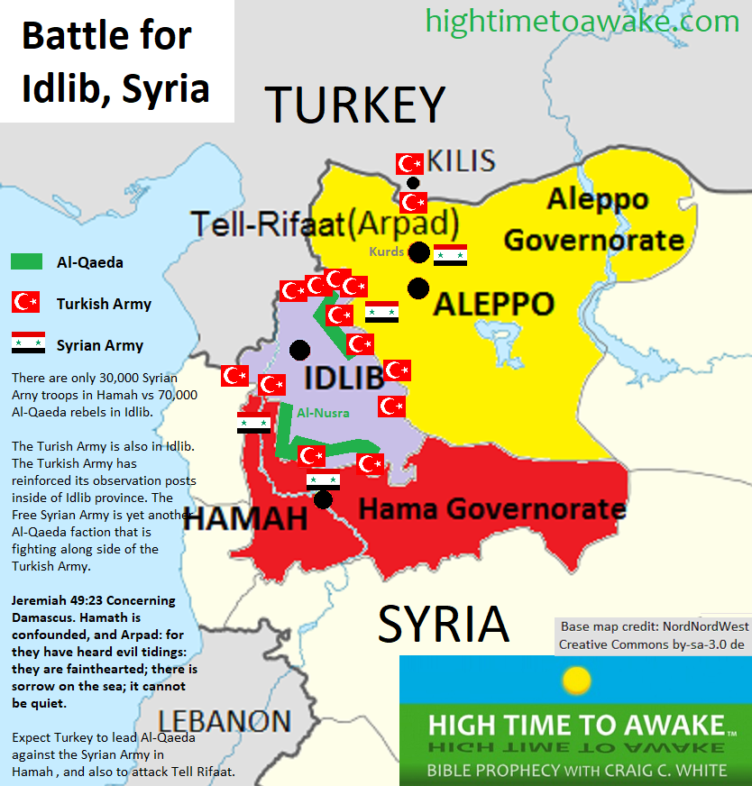 ביום השבת קודש החל הצבא הסורי במתקפה הגדולה שלו על המובלעת הגדולה של המורדים באזור אידליב. במובלעת זו התרכזו מיליוני אזרחים שנמלטו מאזורי קרבות שונים ברחבי סוריה, שרוב עריה המרכזיות – ביניהן חמה, חומס, חאלב, ודמשק – ספגו הרס בהיקפים עצומים.