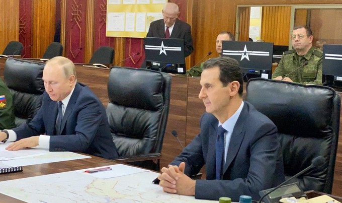 בביקור הפתע הקודם של פוטין בסוריה הוא הגיע לשדה התעופה הרוסי – חמימים בצפון מערב המדינה שם הוא נפגש עם אסד ובמהלך הטקסים שם הוא לא שכח להזכיר לאסד מי באמת בעל הבית בסוריה.