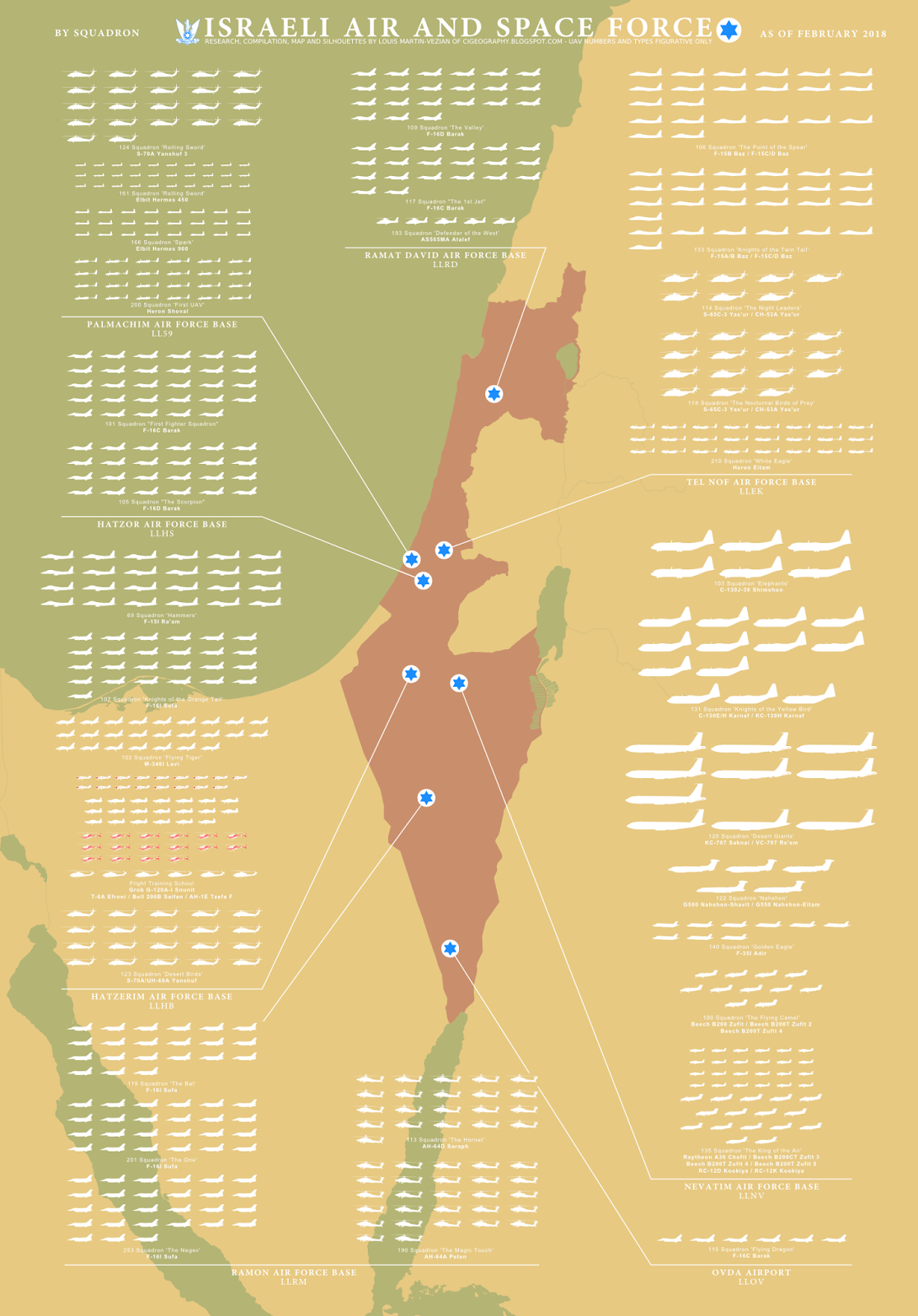 לפנינו ניסיון נוסף בסדרה, הנותן הערכה באשר לסד”כ הכלים שבידי חיל האוויר הישראלי תוך פירוט פריסתם לפי בסיסי חיל האוויר ברחבי ישראל-נכון לחודש פברואר 2018: