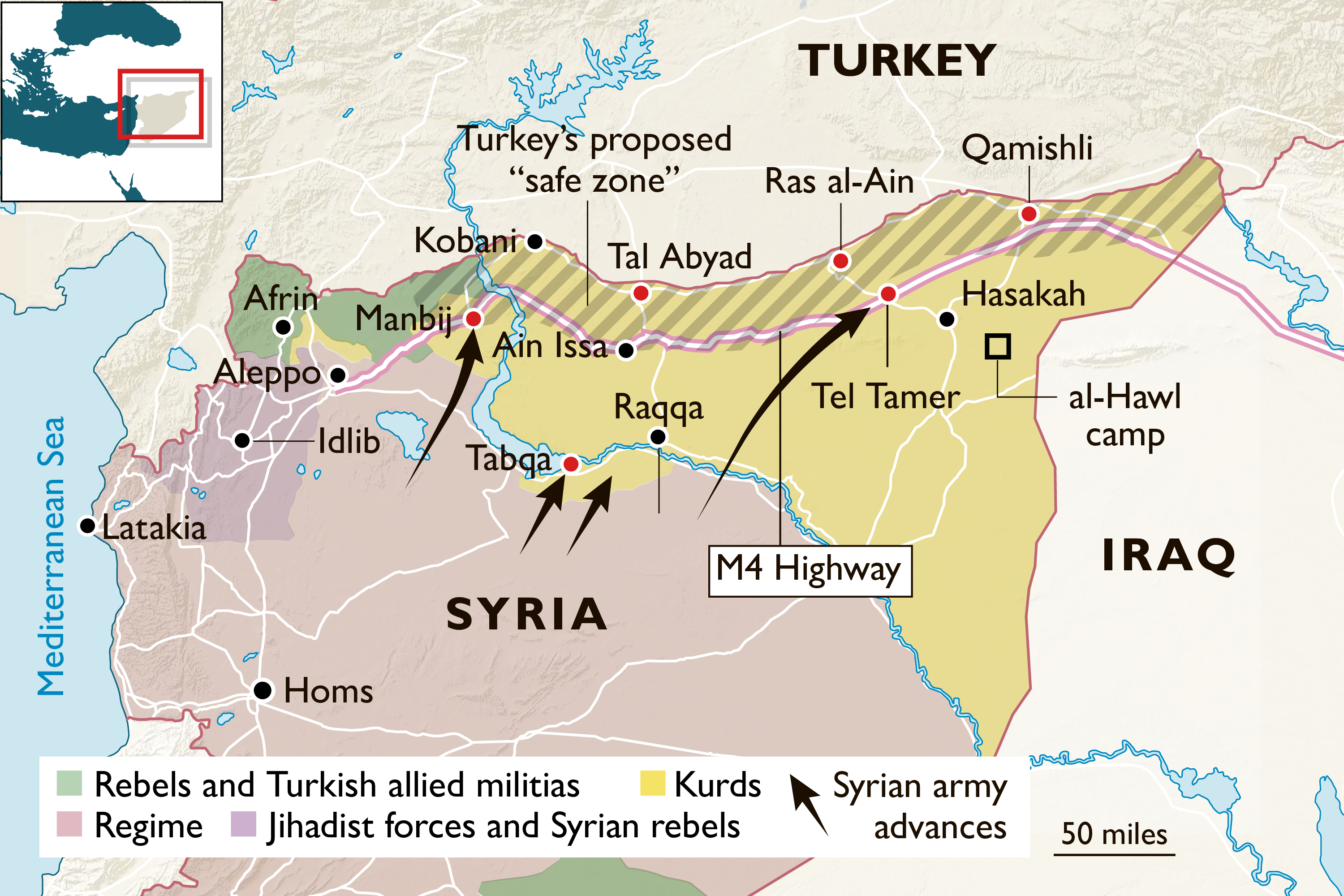 הקבוצות הנאמנות לטורקיה המצויידים בטילי קרקע-אוויר יוודאו שלא יהיו טיסות באזור, והארטילריה הטורקית תגיב להתקדמות הכוחות הסורים לעבר האזור הבטוח,שיהיה בשטח של עשרה מיילים עליהם יכול הצבא הטורקי לשלוט.