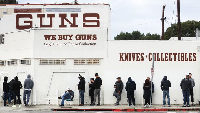 *- תורים ארוכים לפני חנויות למכירת כלי נשק בארה”ב.