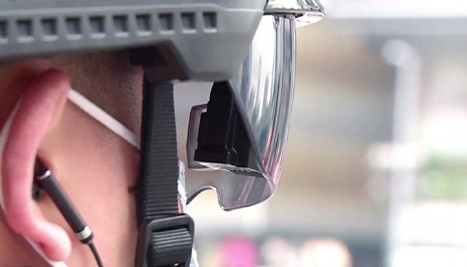 היום התפרסם בסין כי המדינה החלה לצייד שוטרים בקסדות מיוחדות שמגן העיניים שלהם מבוסס כל טכנולוגיית ה-“מקרן תצוגה עילי” שיש במטוסי קרב שם מוקרן לוח השעונים על חופת הטייס השקופה ומאפשר לו להתרכז בנעשה סביבו ולא להשפיל את העיניים ללוח, דבר המוציא אותו מריכוז בטיסה במהירויות גבוהות.