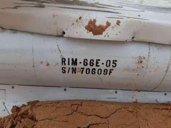 Photo of the remains of US-made RIM-66E-5 that landed at Al-Ajaylat