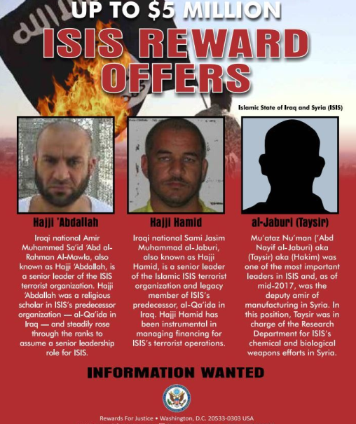 ארה”ב גם הקציבה פרס של 5 מיליון דולר על ראשו של אלקוריישי למי שיביא מידע על מקום הימצאו.