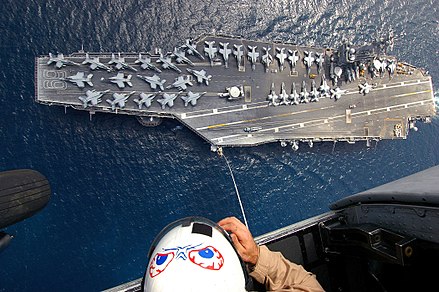 אוניית הענק יצאה לדרכה ב-17 בינואר, תחילה לסדרת אימונים ולאחר מכן המשיכה לים התיכון, שם קיימה תמרון משותף עם נושאת המטוסים הצרפתית שארל דה גול. עיקר פעילותה היה במסגרת הצי החמישי באזור המפרץ הפרסי, כאשר היא פעלה במפרץ עומאן ובצפון הים הערבי וחצתה את מצרי הורמוז.
