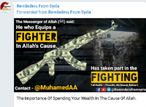 הקמפיין של עז א-דין אל-קאסם החל בראשית 2019 עם קריאה לתרום מטבעות ביטקוין לטובת מימון פעילות הטרור, כאשר הקריאות פורסמו באתרים הרשמיים של הארגון, כולל הנחיות מצולמות לביצוע ההעברות. הבולשת, מס הכנסה וסוכנות המודיעין של המשרד להגנת המולדת הצליחו להשתלט על 150 חשבונות והוצאו צווי חיפוש נגד אישים הממוקמים בארה”ב שתרמו לקמפיין. שני אזרחים טורקים מואשמים ששימשו מלביני כספים ופעלו עסק להעברת כספים ללא רישיון.