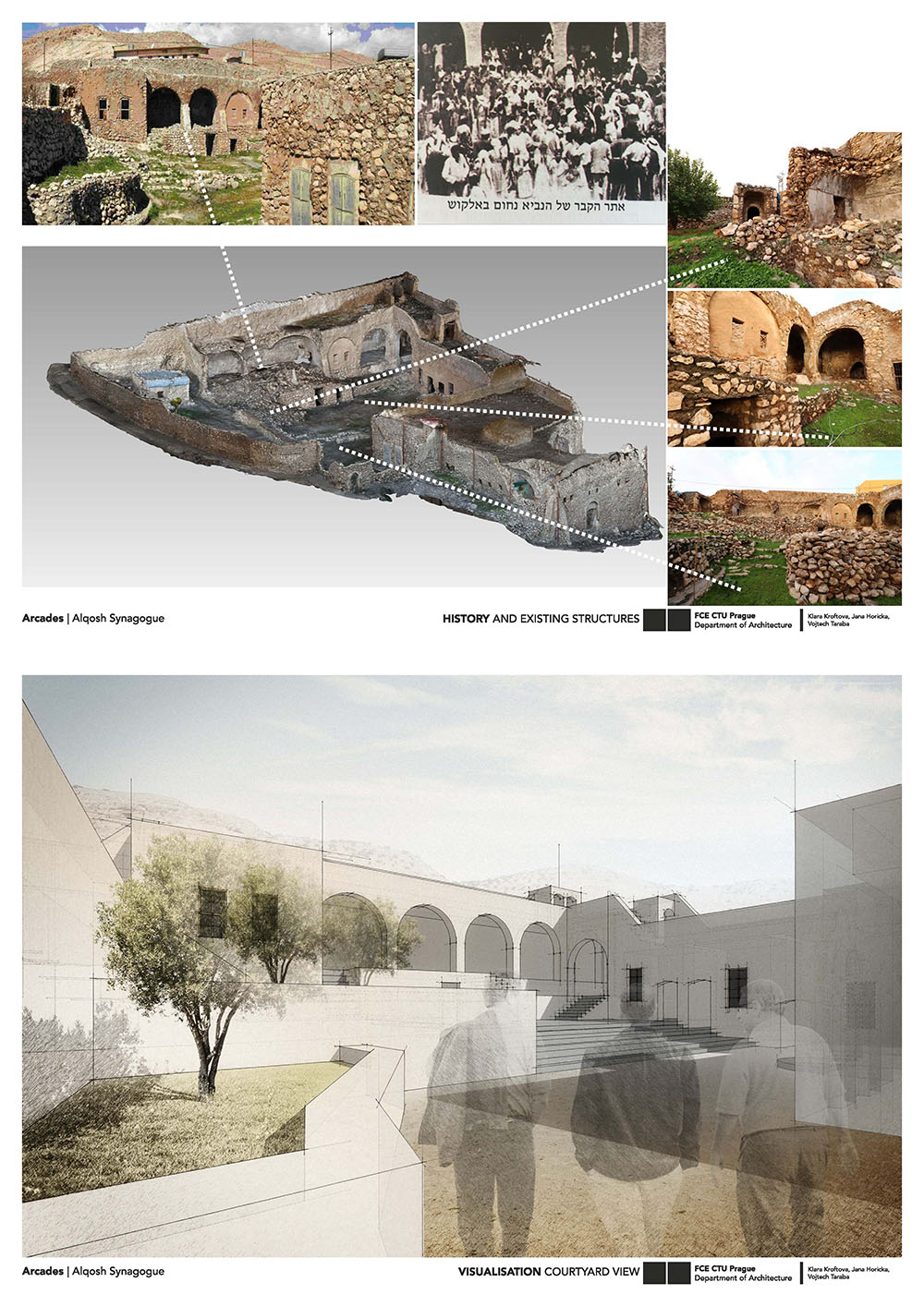 בית הכנסת העתיק שנמצא בסמוך לקבר הנביא נחום, לפני ואחרי השיפוץ (צילום: Mesopotamia Heritage)