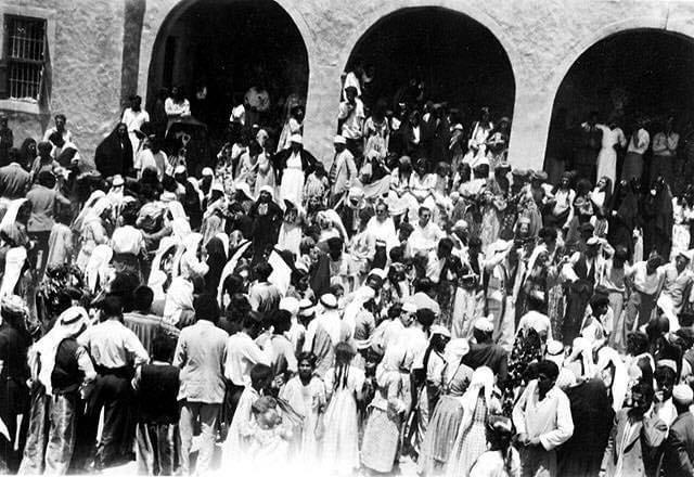 חגיגות חג השבועות בקבר הנביא נחום בשנות ה-40. “היינו עושים תהלוכה עם תזמורת וריקודים, בתופים ובמחולות”