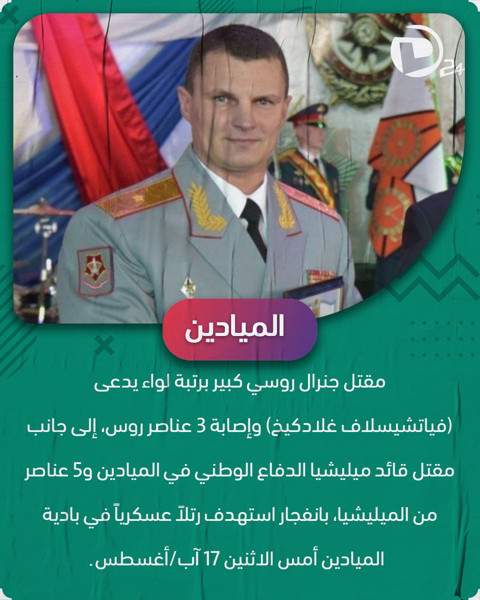 בתאריך ה-18 לאוגוסט החלו הרשתות החברתיות במזרח סוריה להעלות דיווחים אודות קצין בכיר רוסי בדרגת גנרל שנהרג בתקרית אש . בתחילה לא היו יותר מדיי פרטים על התקרית ורוסיה אף הכחישה כי קצין בכיר משורותיה נפגע בתקרית כלשהי בגזרה.