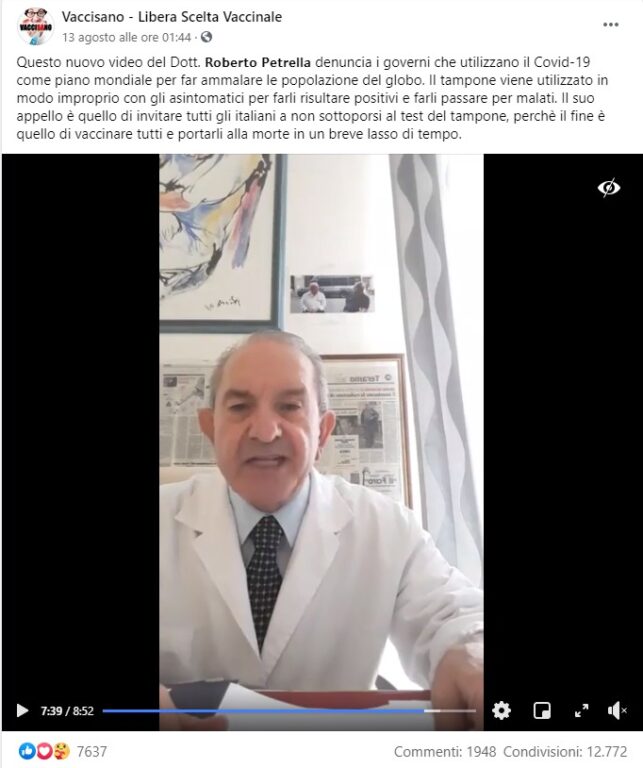 הבדיקות של הנגיף שקריות ואינן מהימנות. תמיד אמרתי את זה ואגיד את זה שוב, וכפי שמעבדות רבות מאשרות, אין בדיקה שיכולה לזהות ולפקח בצורה מדויקת חיידקי coved וSARS-, אלא הן יכולות לאתר רק אינספור כמויות של נגיפים קטנים או מזיקים בתאים מסוימים בגוף שאינם נכללים בחיידקים שנמצאים וחיים בטבע. מספר האנשים עם תוצאה חיובית שיעברו את הבדיקות יגדל, כ- 90%. זו המטרה שלהם וזו הסיבה שהביאה אותם להתחיל לבדוק ילדים. באחד עשר במאי, אף טלוויזיה ואף עיתון או ערוץ שידור איטלקי לא דיווחו כי צרפת הטילה בדיקות אוניברסליות בכל בתי הספר. היו כ- 700,000 בדיקות מדי שבוע. למרבה הצער, איש לא הציג את החדשות. אז ברגע שהילד שלך יחוסן, כל בני המשפחה וכל הקרובים ייאלצו לעשות את הבדיקה גם כן. שימו לב אחיי האיטלקים לא להקשיב להם!נשיאת הנגיף לא אומרת או מעידה על כך שאנחנו חולים,ישנם אלפיי חיידקים בגופנו שבזכותם אנו חיים.