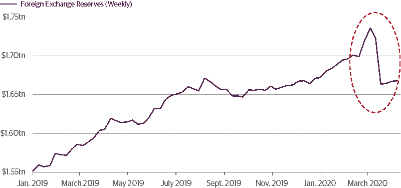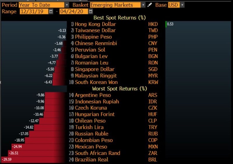 על פי בלומברג, בשיא המשבר האחרון בחודש מרץ כלכלות מתפתחות ראו צמצום של 1.5 מיליארד דולר מחשבון הרזרבות שלהן בכל יום נתון. את חומרת האירוע ניתן לראות בטבלה הבאה.