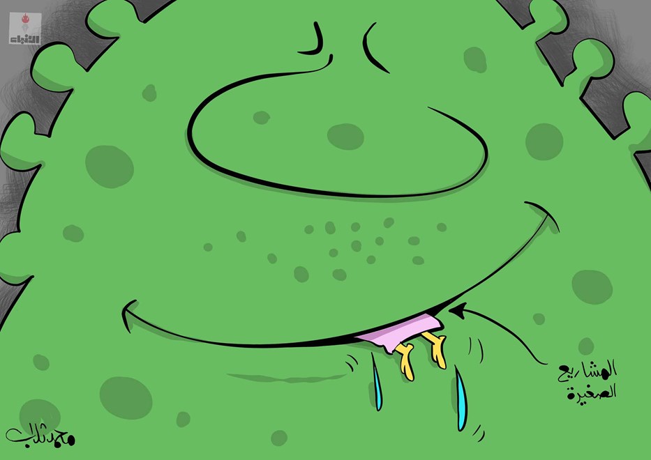 קריקטורות וירוס הקורונה בלע את בעלי הארגונים הקטנים 09/04/202109/04/2021 Nziv קורונה העיתון הכוויתי, אל-אנבאאה, סבר כי המגזרים החשובים ביותר שנפגעו מההשלכות הכלכליות של התפשטות נגיף הקורונה הם הארגונים הקטנים. ובקריקטורה שפורסמה באתר האינטרנט שלה, היא ציירה את נגיף הקורונה כמפלצת אכזרית הזוללת אדם עם הכיתוב “הארגונים הקטנים”.