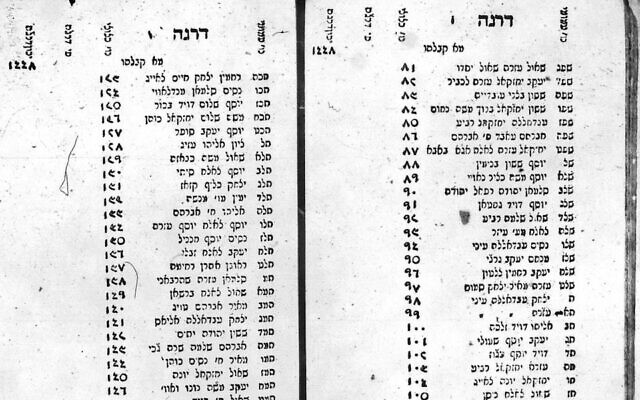 A scanned page of the list of Baghdadi Jewish men exempt from Ottoman military service published by Rabbi Shlomo Bekhor Husin in 1892 and archived at the National Libary of Israel in Jerusalem. (Courtesy of Jacob Rosen-Koenigsbuch/ via JTA)